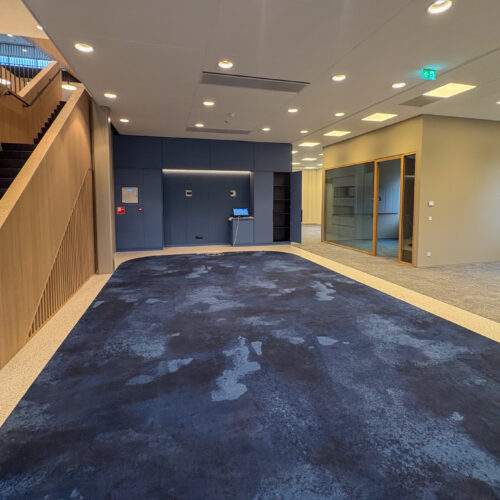 De afgelopen tijd is er hard gewerkt aan de laatste details van het gebouw. De komende weken zal worden toegewerkt naar de definitieve oplevering op 16 december aan de opdrachtgever. Ook aan de binnenzijde van het gebouw is de afwerking van de details nu mooi zichtbaar en nadert het project duidelijk zijn afronding.