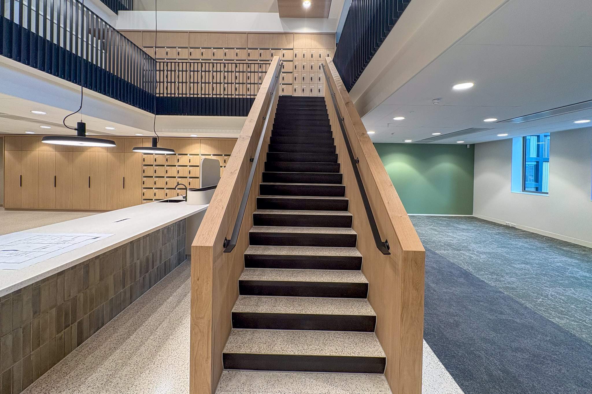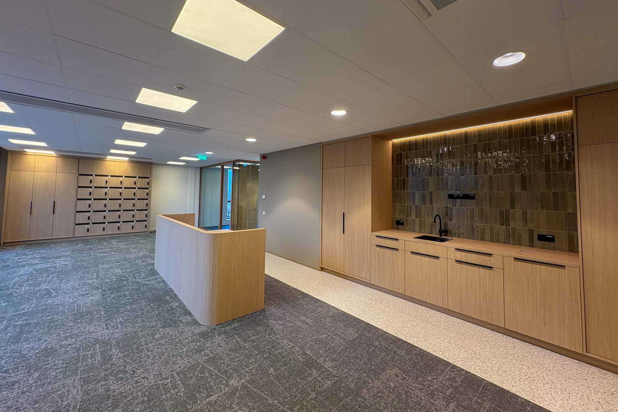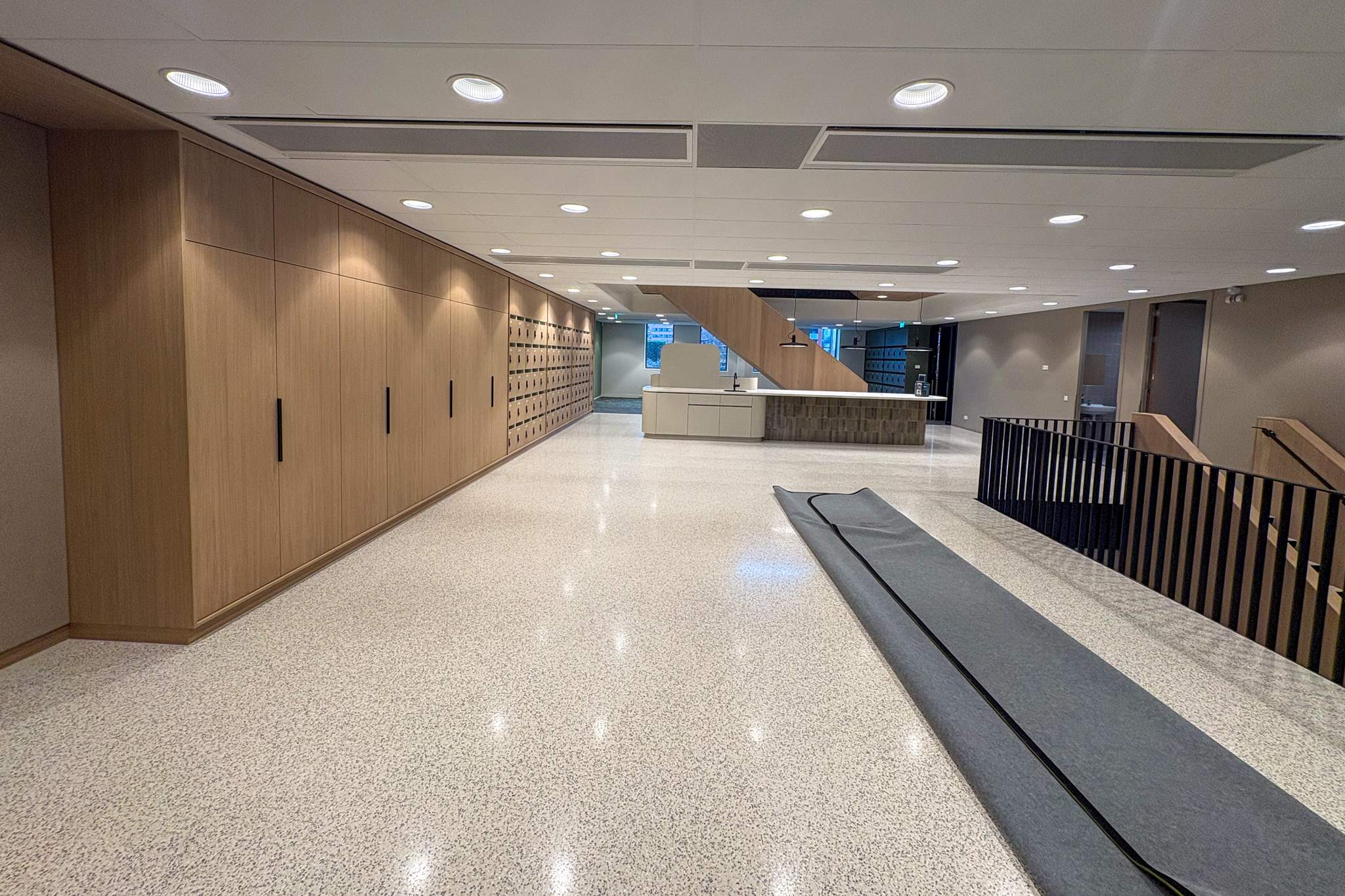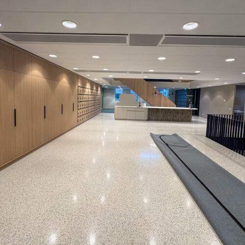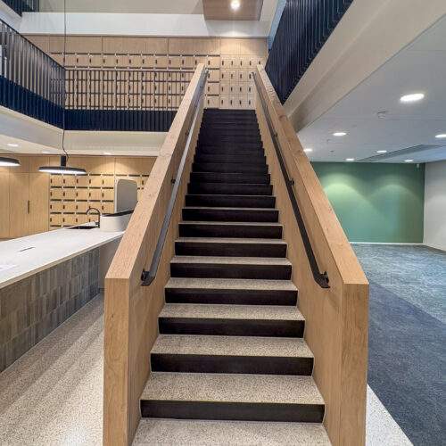 De afgelopen tijd is er hard gewerkt aan de laatste details van het gebouw. De komende weken zal worden toegewerkt naar de definitieve oplevering op 16 december aan de opdrachtgever. Ook aan de binnenzijde van het gebouw is de afwerking van de details nu mooi zichtbaar en nadert het project duidelijk zijn afronding.