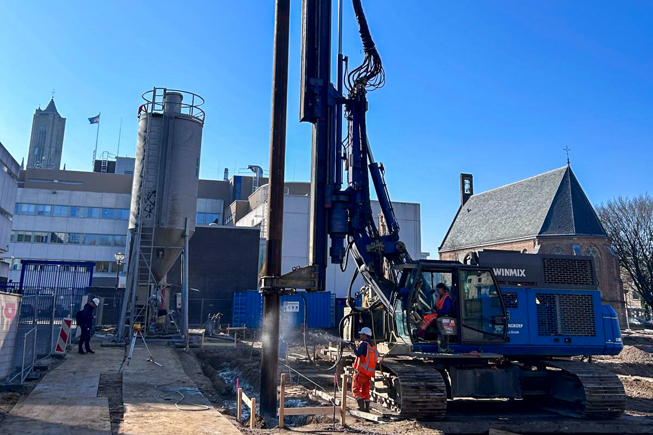 Maandag 2 maart zijn we op de bouwplaats van Stadstheater Arnhem gestart met de CSM wanden. Deze in de grond gevormde betonwanden zorgen ervoor dat we straks de bouwput veilig kunnen uitgraven.