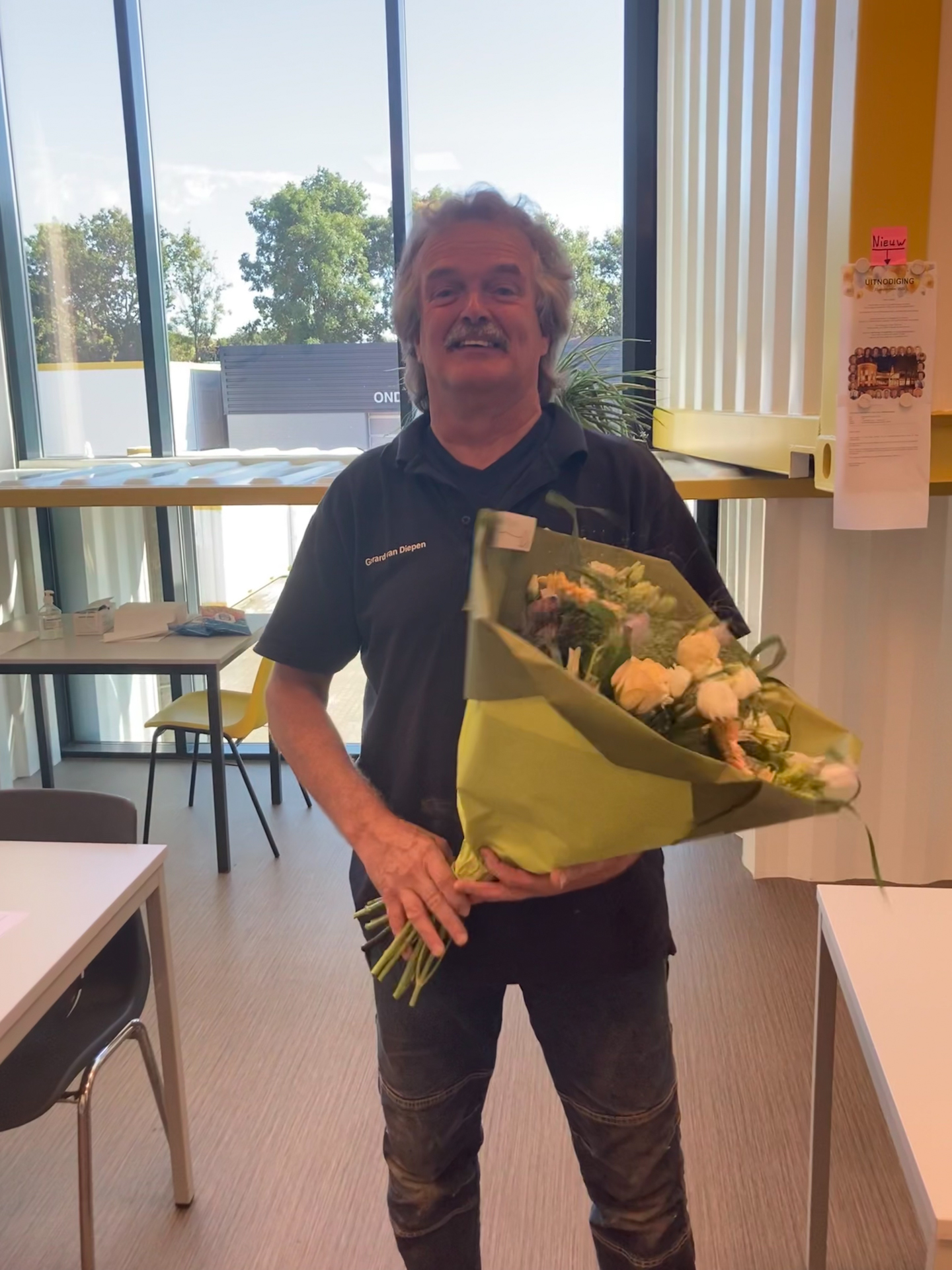 Vandaag vierde Gerard van Diepen zijn 40 jarig jubileum bij Mertens Bouwbedrijf. Gerard werd op de werf in Weert in het zonnetje gezet. Voor alle aanwezige collega’s was er overheerlijke vlaai en Gerard ontving een mooi boeket bloemen. Wij wensen hem nog veel plezierige jaren toe bij Mertens en willen hem namens alle medewerkers nogmaals van harte feliciteren met deze fantastische mijlpaal!
