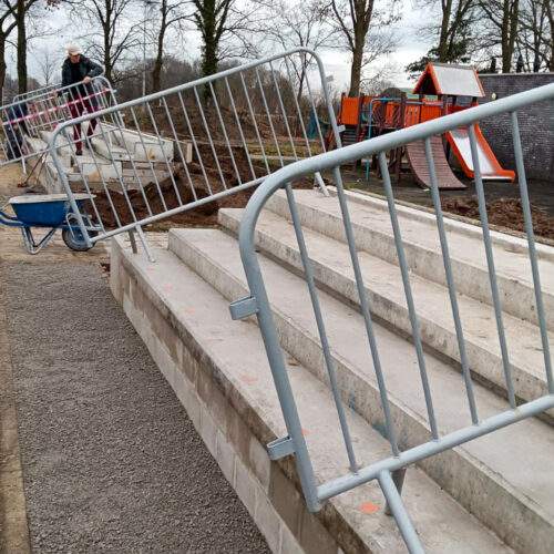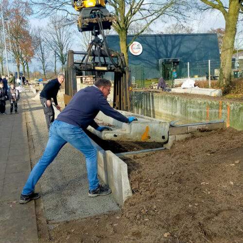 Tijdens de demontage van de oude ijshal van Sportpark Glanerbrook zijn vorig jaar betonnen tribune-elementen geoogst die technisch en constructief nog jarenlang meekunnen. In plaats van deze materialen af te voeren, is bewust gekozen voor een lokale en duurzame herbestemming.