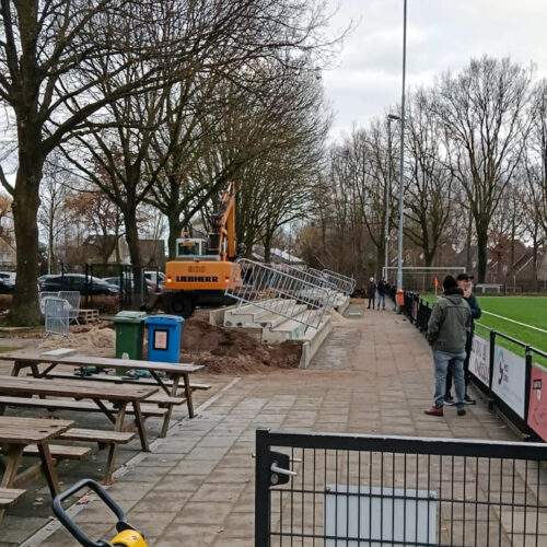 Inmiddels heeft een deel van de geoogste tribune-elementen een nieuwe functie gekregen bij voetbalvereniging SV Laar in Weert. Wij wensen alle supporters veel kijkplezier vanaf de zijlijn!