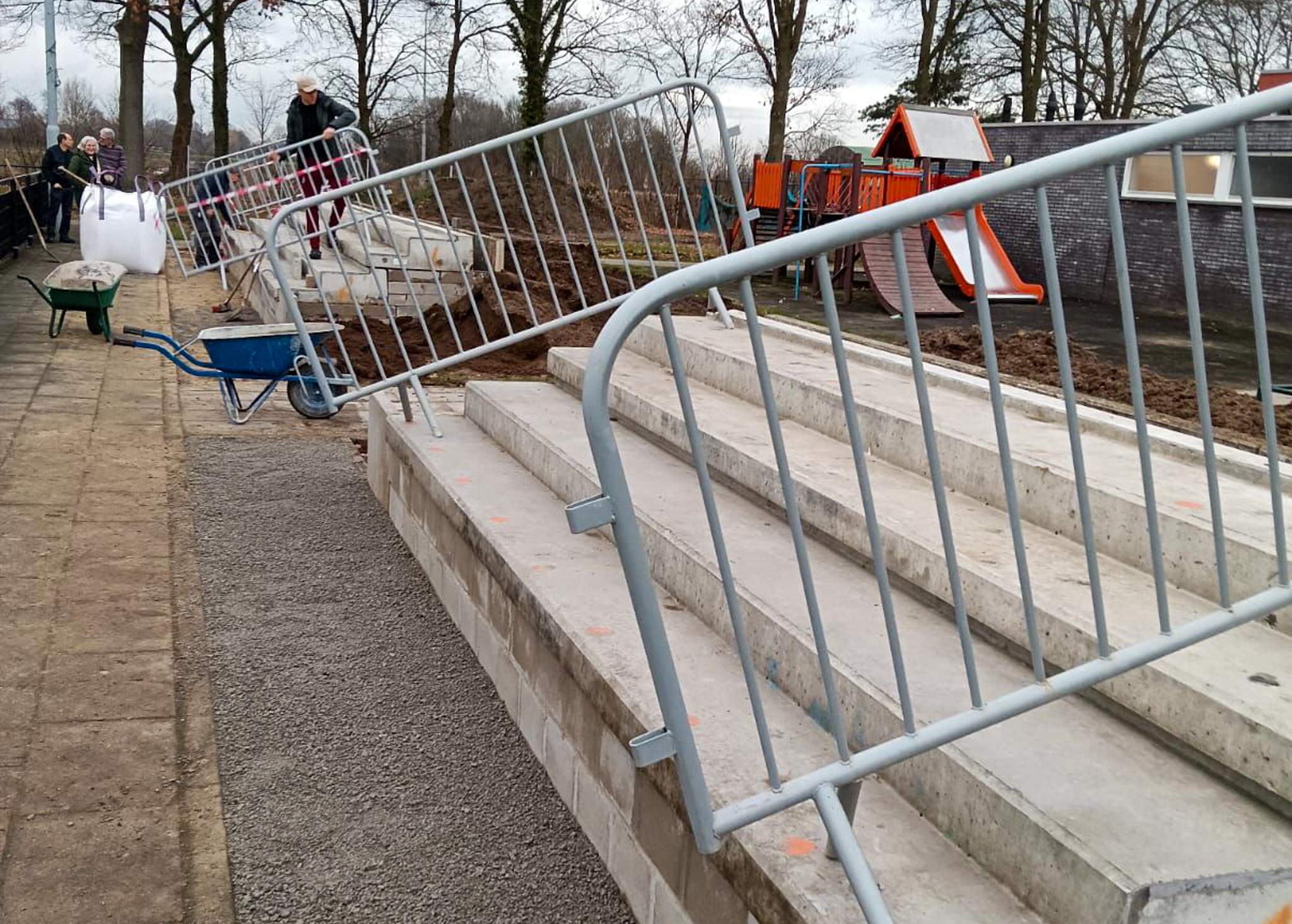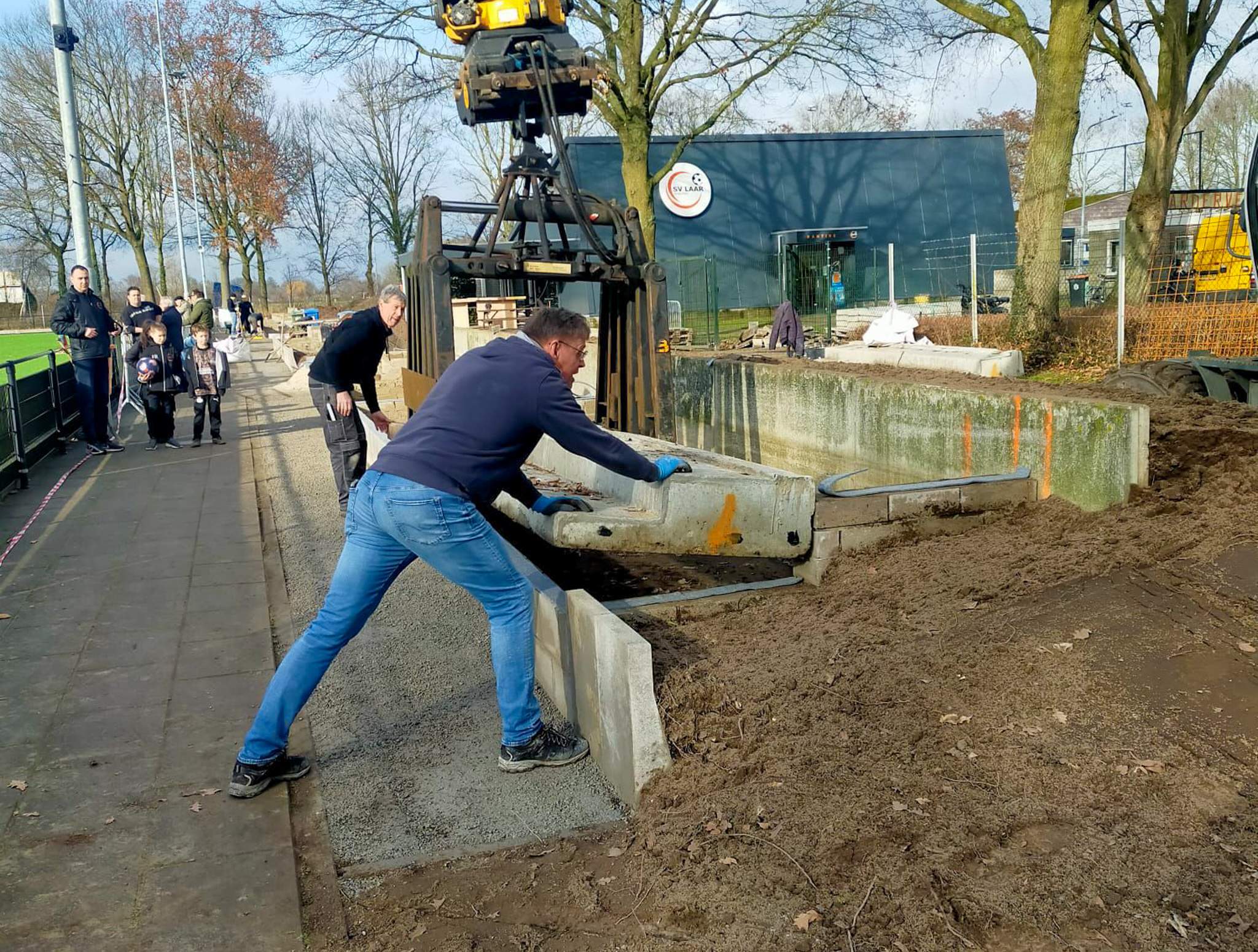 Tijdens de demontage van de oude ijshal van Sportpark Glanerbrook zijn vorig jaar betonnen tribune-elementen geoogst die technisch en constructief nog jarenlang meekunnen. In plaats van deze materialen af te voeren, is bewust gekozen voor een lokale en duurzame herbestemming.