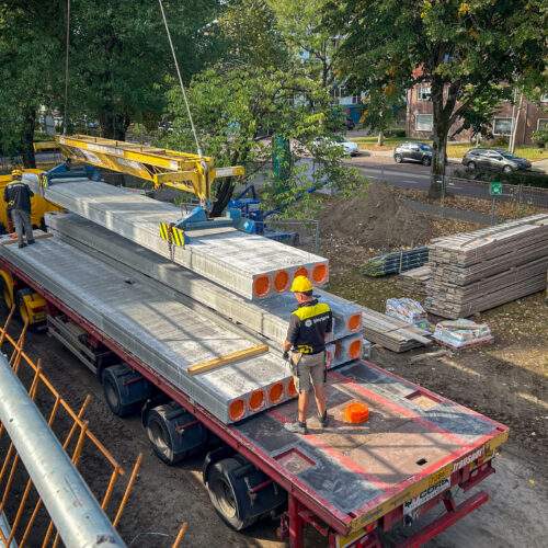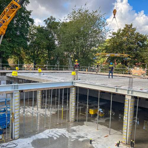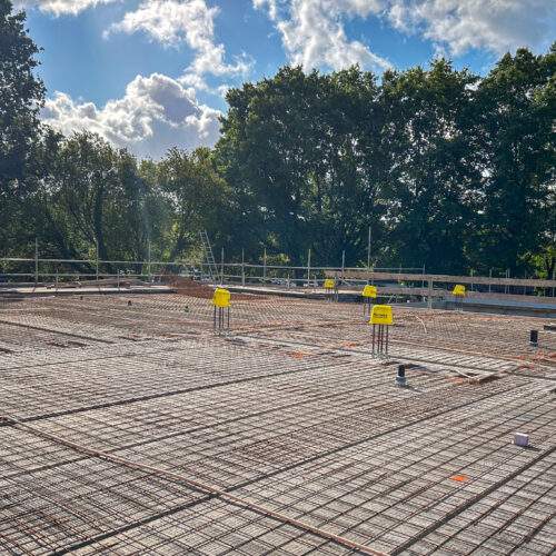 Tegelijkertijd werken we aan de staalconstructie op de tweede verdieping. De bouw verloopt volgens planning en vordert gestaag in de hoogte. Bekijk de video!