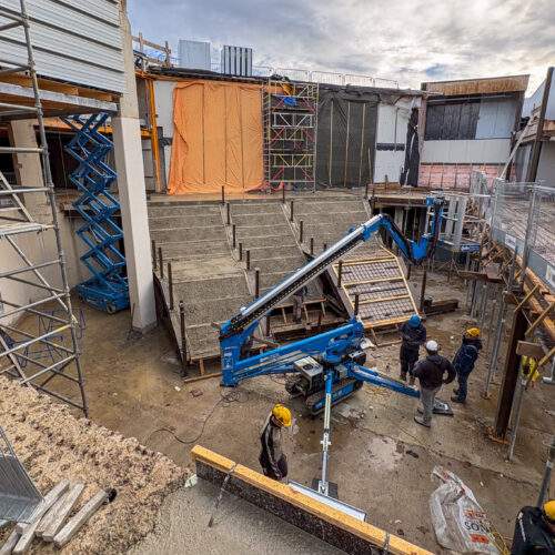 Op 6 november hebben we de tweede laag dakbedekking op het dak van de passerelle aangebracht. Ter voorbereiding op de volgende fase wordt momenteel ook de staalconstructie afgedicht. Op maandag 10 november worden de dakplaten geplaatst, waarna de dakdekker verder kan. De betontrap bij het entreegebouw is inmiddels gestort en ook de contouren van de fietsenstalling zijn nu duidelijk zichtbaar. De montage van de buitenbeplating van Rodeka (inclusief belettering) is na volgende week vrijwel afgerond.