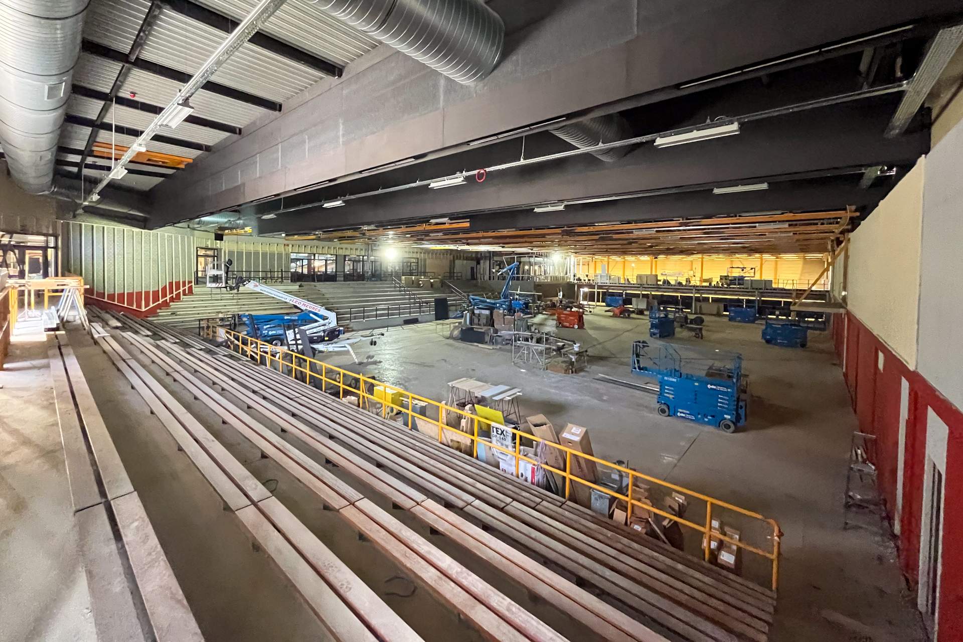 Afgelopen donderdag is de druklaag op de kanaalplaat vloer van de fitnessruimte gestort. Op de foto met de kraan is te zien dat de luchtbehandelingskasten worden geplaatst in de technische ruimte. In de sporthal wordt er verder gewerkt aan de bestaande dakconstructie en het regelwerk voor de wandbeplating. De tegelzetter is nagenoeg gereed met het tegelwerk van de douche en wc wanden van de kleedruimtes.